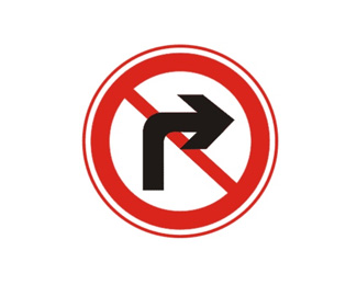禁止向右轉彎標志表示前方路口禁止一切車輛向右轉彎。此標志設在禁止向右轉彎的路口前適當位置。