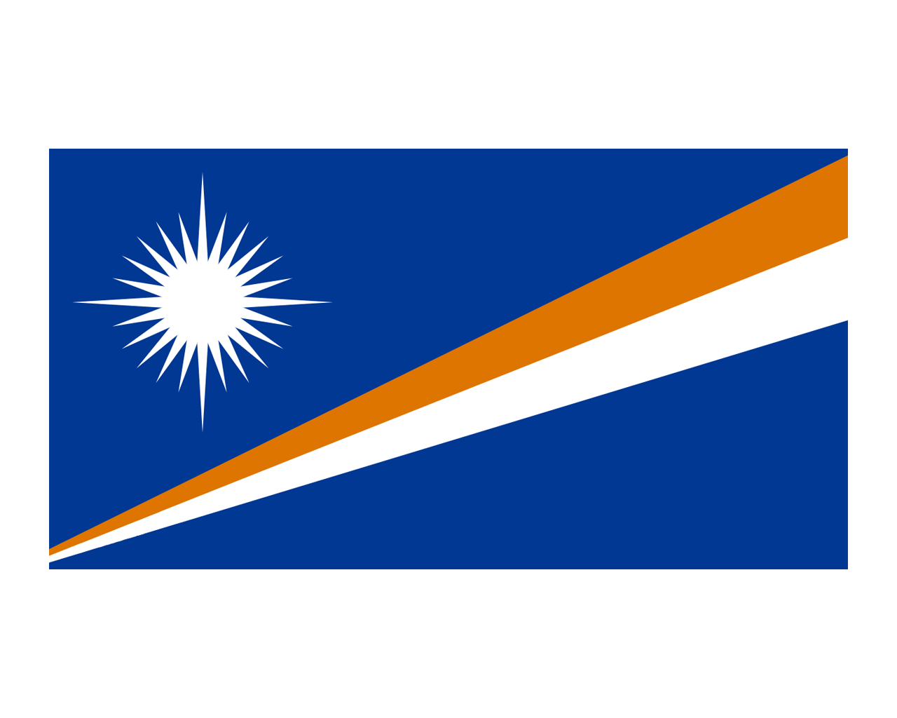 馬紹爾群島共和國(The Republic of the Marshall Islands),簡稱馬紹爾群島,歸屬于大洋洲,首都馬朱羅。馬紹爾群島國旗呈長方形,長與寬之比為19∶10。旗地為藍色,自左下角向右上方斜伸出兩道逐漸變寬的條帶,上為橙色,下為白色;旗面左上角有一輪白色太陽,放射24束光芒。藍色象征太平洋,紅、橙兩道寬條表明該國由兩列島鏈組成;太陽放射24道光芒,象征該國的24個市政區域。