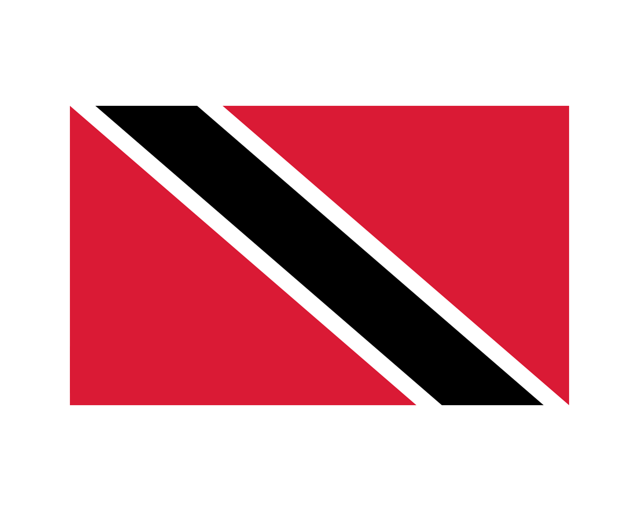 特立尼達(dá)和多巴哥共和國(Republic of Trinidad and Tobago),位于中美洲加勒比海南部,緊鄰于委內(nèi)瑞拉外海,首都西班牙港。特立尼達(dá)和多巴哥國旗呈長方形,長與寬之比為5:3。旗地為紅色,一道從左上角斜貫至右下角的黑色寬帶將紅色旗面分成兩個相等的直角三角形,黑色寬帶兩側(cè)有兩道細(xì)白邊。紅色代表國家和人民的生命力,還象征溫暖和太陽的熱能;黑色象征人民的力量和獻(xiàn)身精神,也象征國家的統(tǒng)一和財富;白色象征國家的未來和海洋。兩個三角形代表特立尼達(dá)島和多巴哥島。