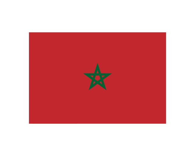 摩洛哥王國,簡稱摩洛哥,是非洲西北部的一個沿海阿拉伯國家,摩洛哥最早居民為柏柏爾人,首都是拉巴特。摩洛哥國旗呈長方形,長與寬之比為3:2。旗底顏色為紅色,中央有一顆由五根綠色線條交叉組成的五角星。被稱為“蘇萊曼之印”。紅色來自摩洛哥古國早期國旗的顏色。綠色五角星有兩種解釋:綠色是穆罕默德后代所喜歡的顏色,五角星象征人民對伊斯蘭教的信仰;這一圖案是驅病避邪的所羅門護符。