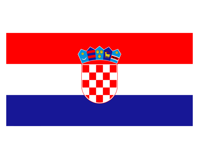 克羅地亞共和國(Republika Hrvatska),簡稱克羅地亞,是位于歐洲東南部的共和國,處于地中海及巴爾干半島潘諾尼亞平原的交界處,首都為薩格勒布。克羅地亞國旗呈長方形,長寬之比為2:1。旗面由三個平行相等的橫長方形組成,自上而下分別為紅、白、藍(lán)三色。旗面中間繪有國徽。克羅地亞于1991年6月25日宣布脫離原南斯拉夫獨(dú)立,新國旗是1990年12月22日開始啟用的。