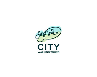 城市旅游項目標志設計,使用抽象的線條勾勒的城市圖案并形成一個腳印的形狀,構思很巧妙。