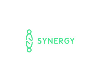 SYNERGY創意標志設計,該標志的主識別圖形使用兩個線性人形反轉對稱構成。