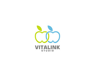 VITALINK營養公司標志,以兩個相連的蘋果作為公司標志的識別圖案,藍色和綠色是識別色。