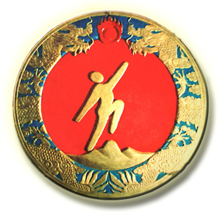 方字變化為人,飛于方山之上,寓意方姓因方山得姓,外環(huán)雙龍吞日寓意中華文明,色彩紅黃為主,顯示風(fēng)貌昂揚向上