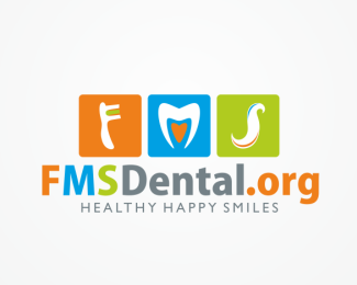 FMS牙科標志構建3個方塊,其中字母FMS看起來像牙刷牙齒牙膏的標志。用了很多顏色,給它一個有趣的和開朗的樣子,尤其是對孩子們的吸引力。
