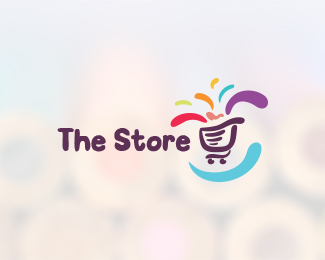 一個商店的標志,俏皮、多彩、快樂的購物體驗。