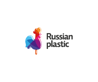 俄羅斯塑料廠標志設計欣賞,標志設計采用一只彩色的公雞做為圖案,顯得非常醒目。
