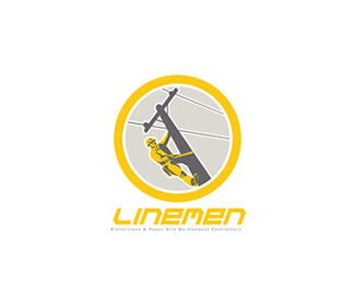 這是一家電業公司的標志,標志以架線工施工圖組成,圖案形象具體,色彩簡潔有力。
