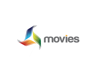 影視公司logo設(shè)計(jì)使用了膠片的素材,構(gòu)成旋轉(zhuǎn)的風(fēng)車圖案,logo色彩驚艷醒目。