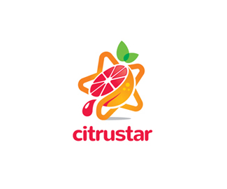 鮮榨果汁店標識充滿立體的造型,和新鮮的色彩,五角星和濺出的果汁,體現了水果的新鮮質感。