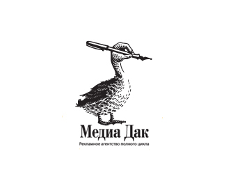 廣告公司名為媒體鴨,商標除了呼應公司的名稱,更以極度夸張大膽的想象力征服視覺受眾,手拿畫筆體現了廣告公司的美化含義,類似古怪離奇的設計還有人頭馬,美人魚等怪異組合。