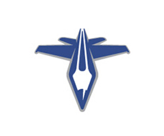 鉛筆盒戰斗機結合的logo作品,寓意創意風暴,設計比拼,標志簡潔有空間感。