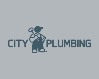 City Plumbing水暖城創意標志設計,使用水管工人的形象標志該標志的吉祥物。