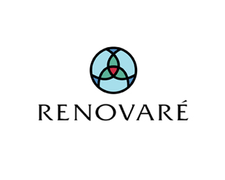 Renovare抽象幾何標(biāo)志設(shè)計欣賞,使用幾何圖形組合成的創(chuàng)意識別圖形,整體以紅色、藍(lán)色、綠色作為主識別色。