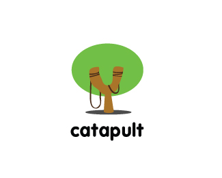 Catapult卡通射擊類小游戲標(biāo)志設(shè)計(jì),使用彈弓作為該標(biāo)志的主元素,整合樹形的結(jié)構(gòu),以綠色和棕色作為主識別色,可應(yīng)用于小游戲相關(guān)的標(biāo)志設(shè)計(jì)。