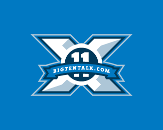 BigTenTalk十大講座網站標志設計欣賞,使用字母“X”和數字11組合成該標志的主識別圖形,整體以藍色和白色作為主識別色。