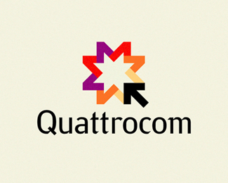 Quattrocom創意幾何箭頭標志設計欣賞,融入星形和箭頭的標志,整體使用豐富的色彩組合。