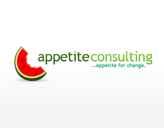 Appetite Consulting食欲咨詢機構標志設計欣賞,使用被咬過的西瓜作為該咨詢機構的主識別圖形,整體以西瓜紅和綠作為主識別色。