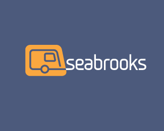 Seabrooks海溪交通品牌標志設計,使用線條的形式勾勒出火車頭的形狀,整體以黃色和藍色作為主識別色。