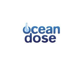 Ocean Dose海洋劑量字母創意標志設計欣賞,以試管、燒瓶代表劑量融入字母“O”作為該標志的主創意圖形,以海洋的藍色作為主識別色。