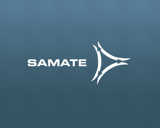 SAMATE.科技品牌標志創意設計,使用圓弧和三角形組合而成的圖形富有科技感,字母使用穩重的粗線條,以中性藍色調為品牌色。