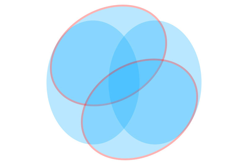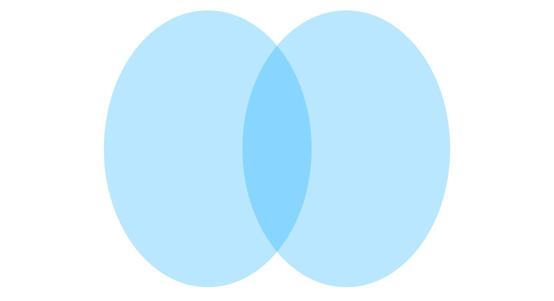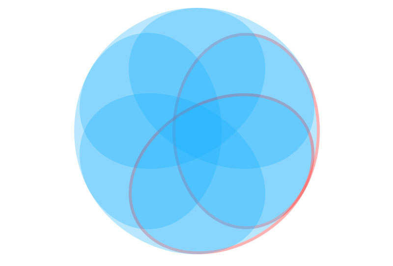 2、復(fù)制橢圓,降低透明度到30%用來觀察相交的面積圖形大小,向右平移200px。(如圖)
