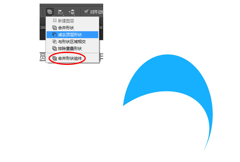 7、選中形狀圖層,在工具欄選擇減去頂層開關(guān)并且合并形狀組件。