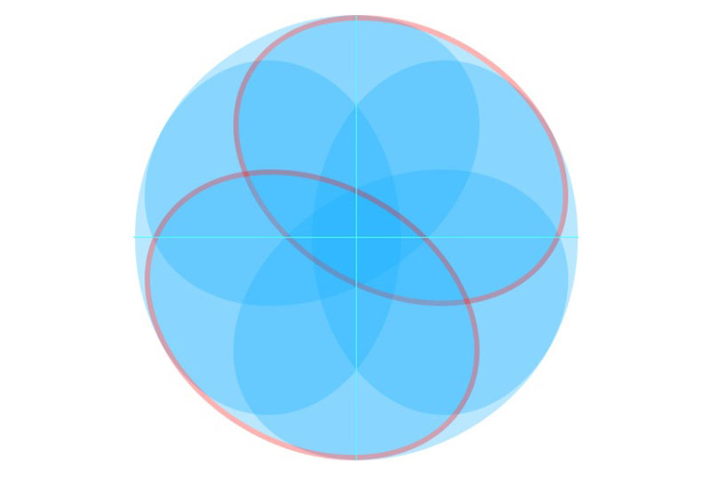 4、繼續(xù)上一步操作,復(fù)制兩個(gè)橢圓并且旋轉(zhuǎn)60度。畫2條。(如圖)