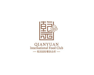 乾園國際餐飲會所標志設計,很有中國風味的一個品牌字體設計,融入祥云元素,體現濃濃的中國風。