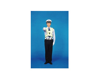 1、面向來車方向,右臂向前平伸與身體成90度,掌心向左,五指并攏,面部及目光平視前方;