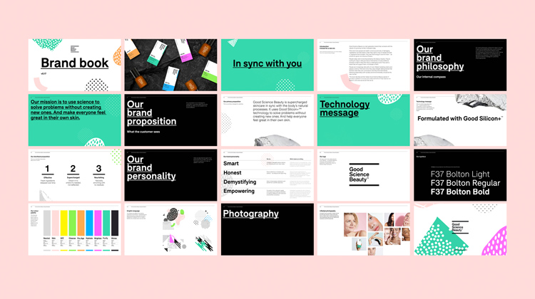 品牌形象塑造的出發(fā)點(diǎn)是彰顯“中性”和“平易近人”的氣質(zhì)。Good Science Beauty的品牌推廣設(shè)計(jì)已經(jīng)擴(kuò)展到商品和包裝、廣告海報(bào)、vis設(shè)計(jì)指南和名片等印刷材料,以及整個網(wǎng)站和社交媒體平臺的線上。