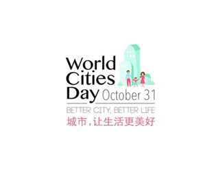 世界城市日圖標由聯合國人居署專家精心設計,分兩個部分:左上方是“世界城市日”的英文全稱,右上方的圖案以三幢建筑寓意城市,以三口之家代表生活在城市里的廣大居民,建筑周圍點綴著青草,象征著城市與環境的和諧共生;圖案下方用英文標注了“世界城市日”